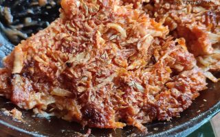 Chorizo pokroić w kostkę, podsmażyć, dodać czosnek i cukinię. Doprawić solą i pieprzem. Dusić kilka minut. Zdjąć z ognia. Wlać, ciągle mieszając, zblendowany mascarpone z żółtkami oraz potarty Cheedar . Zjadać najlepiej od razu.