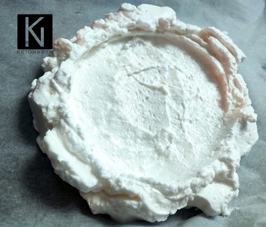 Na papierze do pieczenia formujemy koło, wstawiamy do piekarnika nagrzanego na 180 stopni – termo obieg na około 25 minut . Studzimy w piekarniku na kratce.