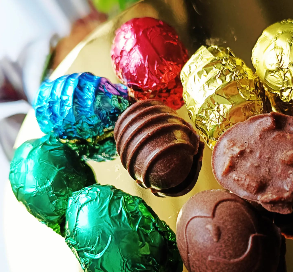 związanych z otwieraniem folii czekoladowych jajek ![]()