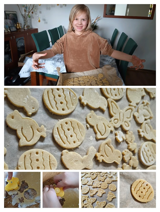 Wycinać ciasteczka – piec 15 minut – 170 stopni.