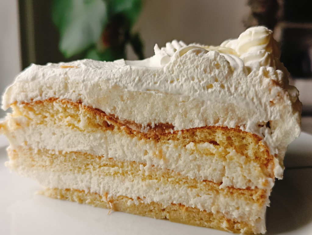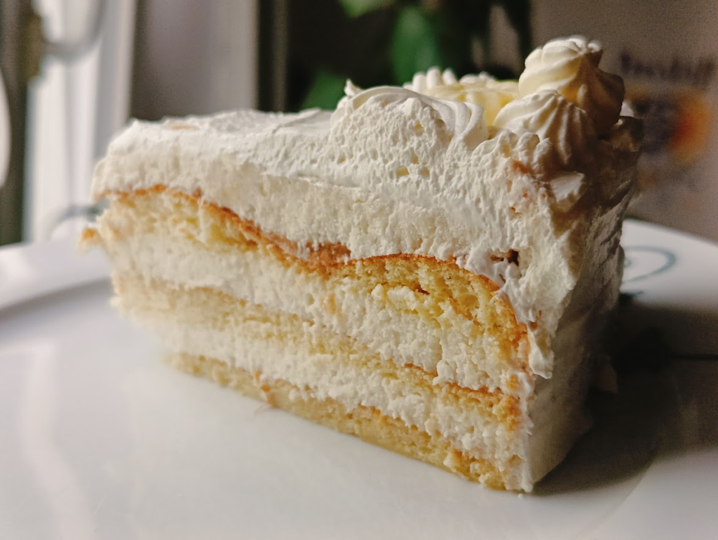 Kremem śmietankowym obłożyć boki, oraz górę tortu.