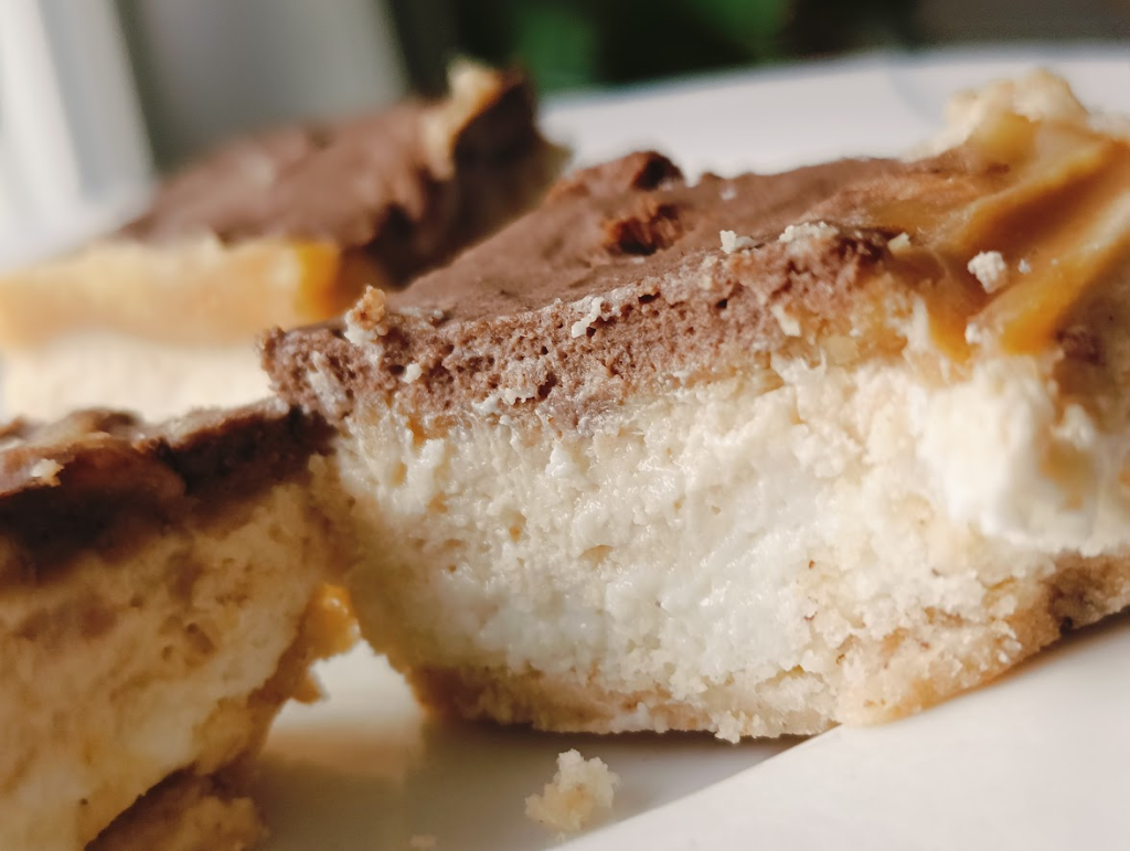 Keto Snikers – ciasto bez pieczenia to druga wersja keto Sernika na zimno Snikers, tym razem na jogurtach greckich oraz z zmienionym przepisem na karmel. Wersja jest mniej stabilna, można pokusić się o zwiększenie ilości żelatyny, jednak w takiej proporcji jak jest – ciasto rozpływa się w ustach. Najlepiej smakuje prosto z lodówki, wówczas spód jest bardzo stabilny, warstwa karmelu również a orzeszki chrupiące. Polecam wypróbować obydwie wersje i dajcie znać, który wariant Wam bardziej smakuje, moim faworytem jest ten przepis.