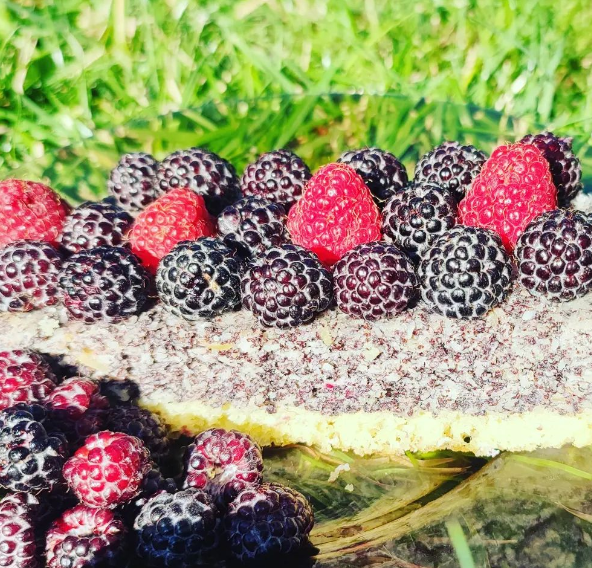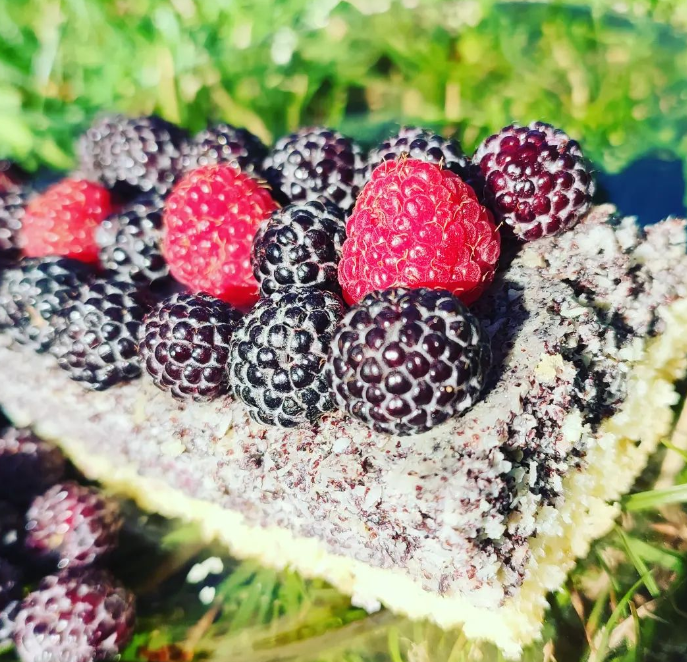 Podany z malinami czarnymi i zwykłym i prosto z krzaka ❤️