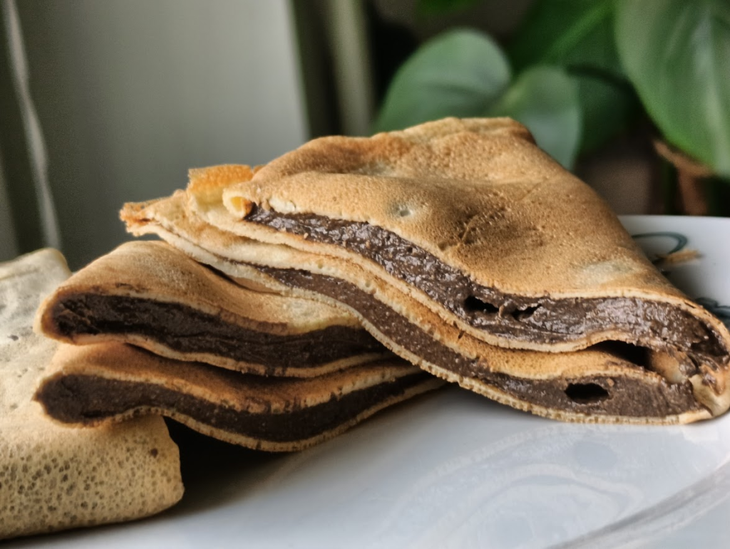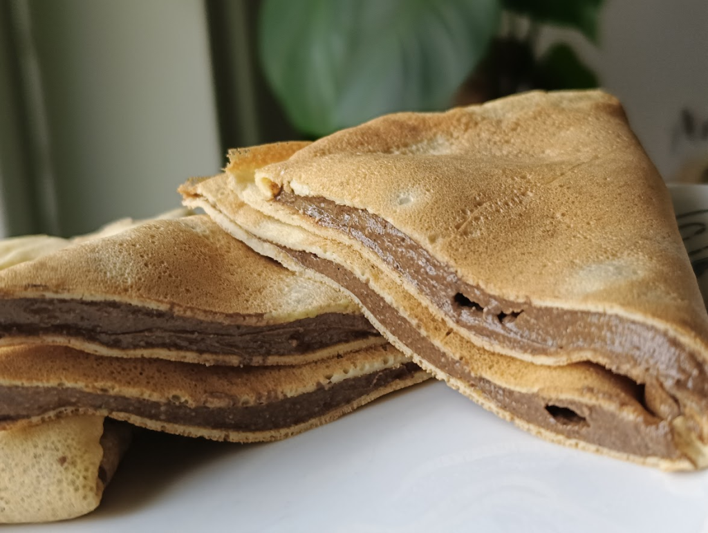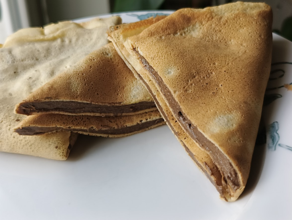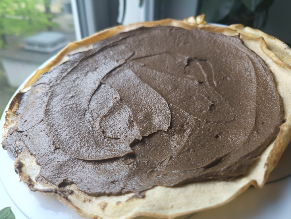 Kremem posmarowałam naleśniki a następnie złożyłam na trójkąty.
