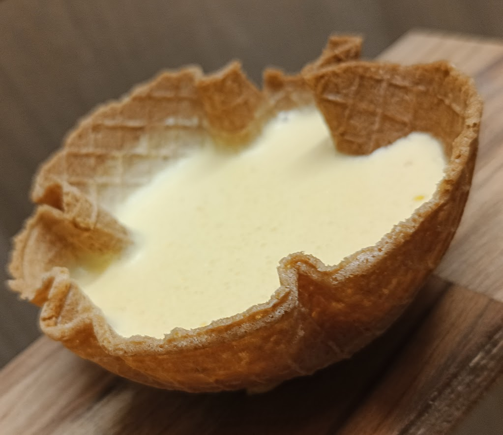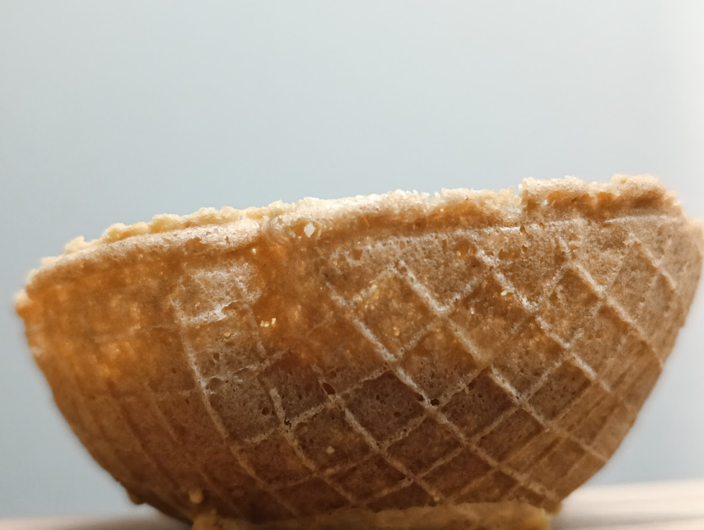 By zrobić miseczki zamiast rożków, wystarczy po wypieczeniu wafelka uformować go w miseczce.