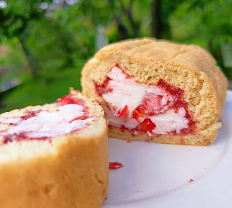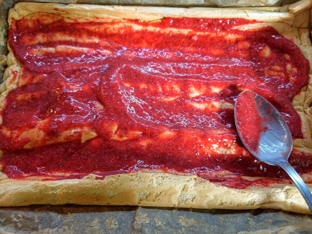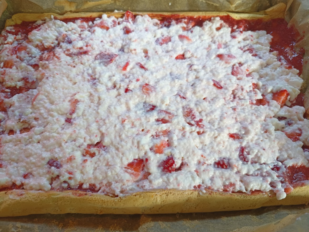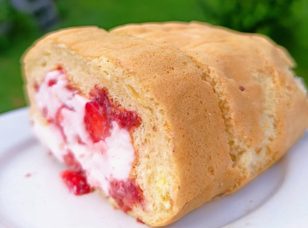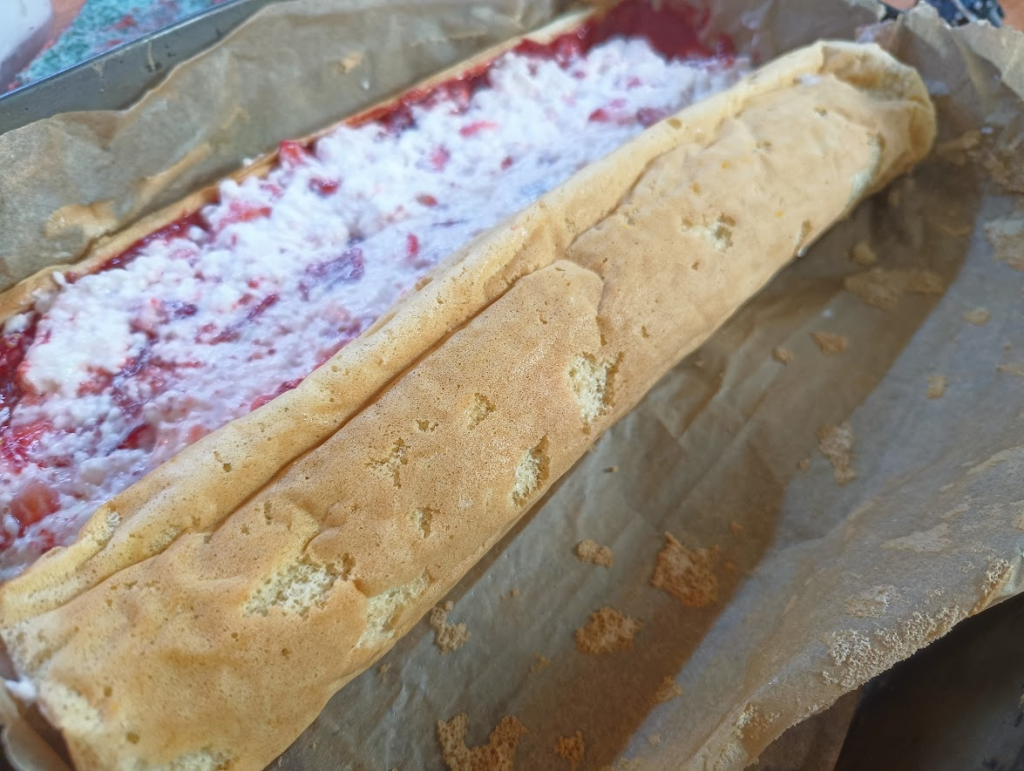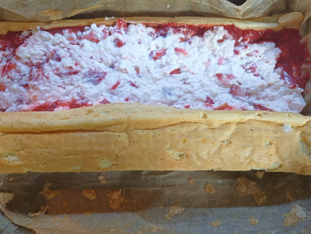 Keto rolada truskawkowa z jogurtowym nadzieniem.