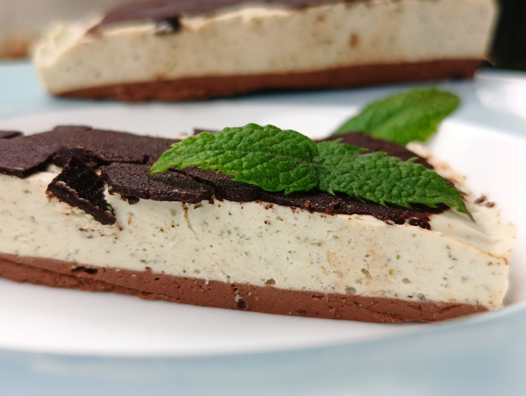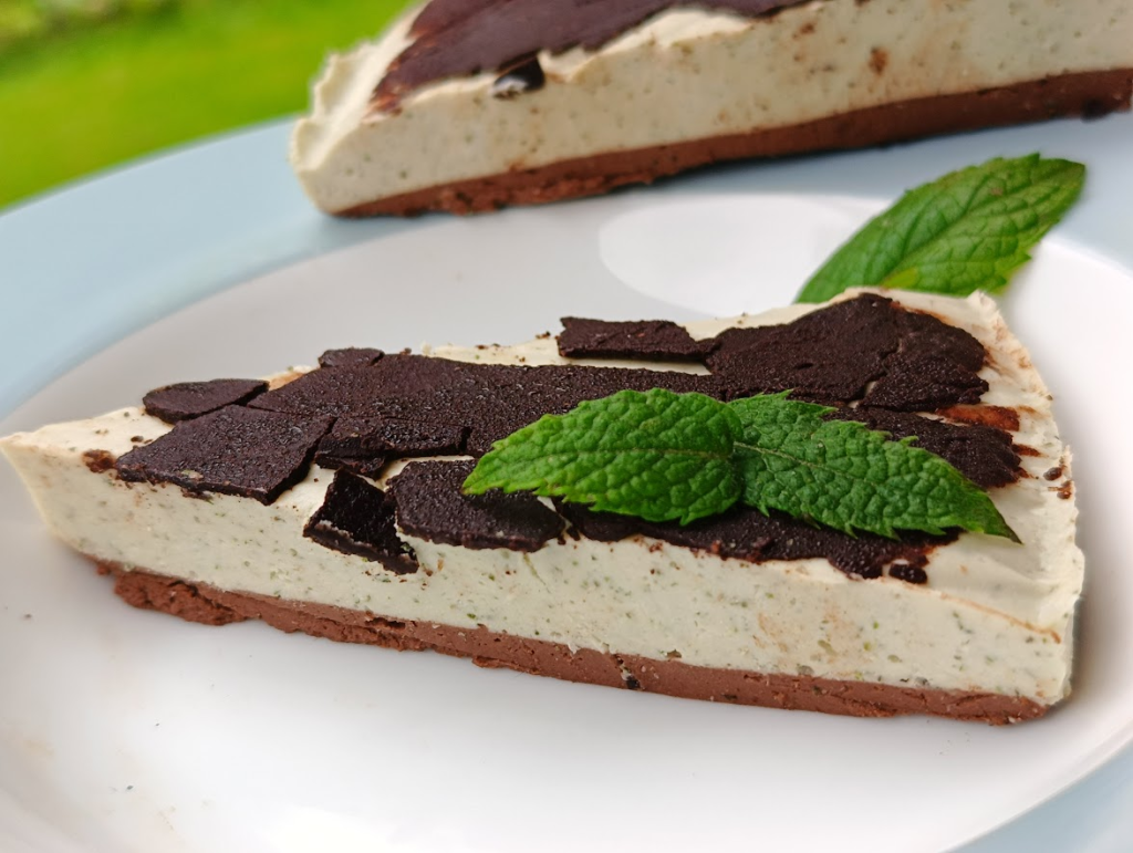 Zmiksować twaróg z miętą z pozostałym twarogiem oraz erytrytolem.