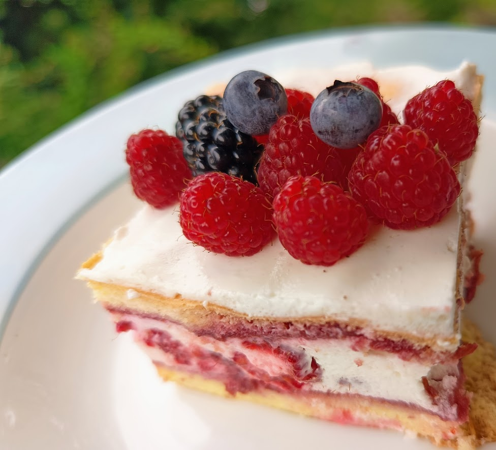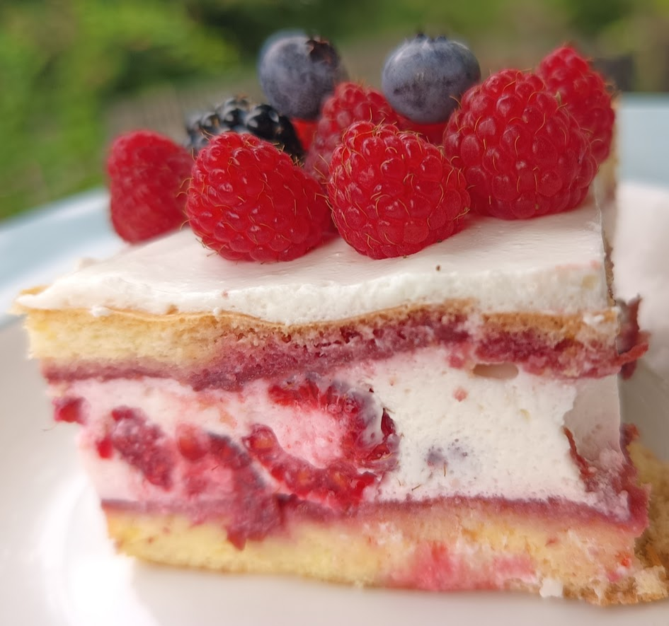 Keto ciasto z delikatnym piankowym kremem i malinami