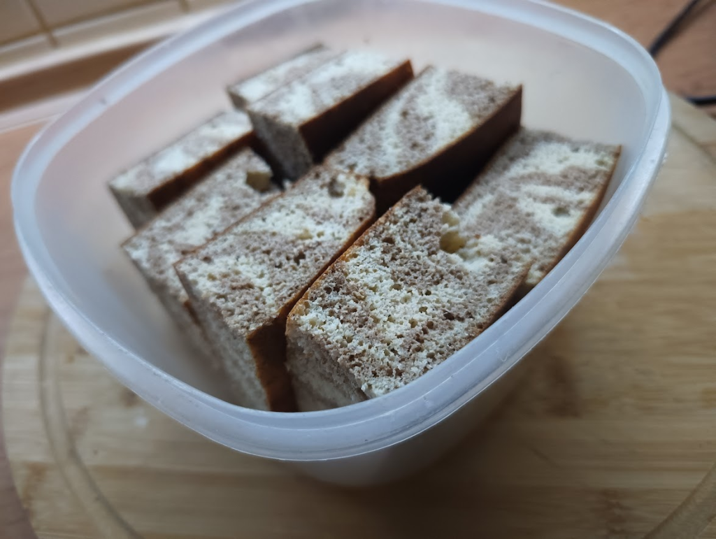 Ciasto to taka słodka bułeczka cynamonowa, więc idealnie będzie komponowała się z masełkiem 🙂