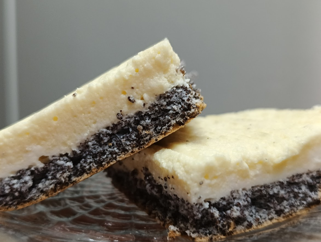 Masa makowa lepiej sprawdza się jako spód ponieważ masa sernikowa jest bardzo delikatna.