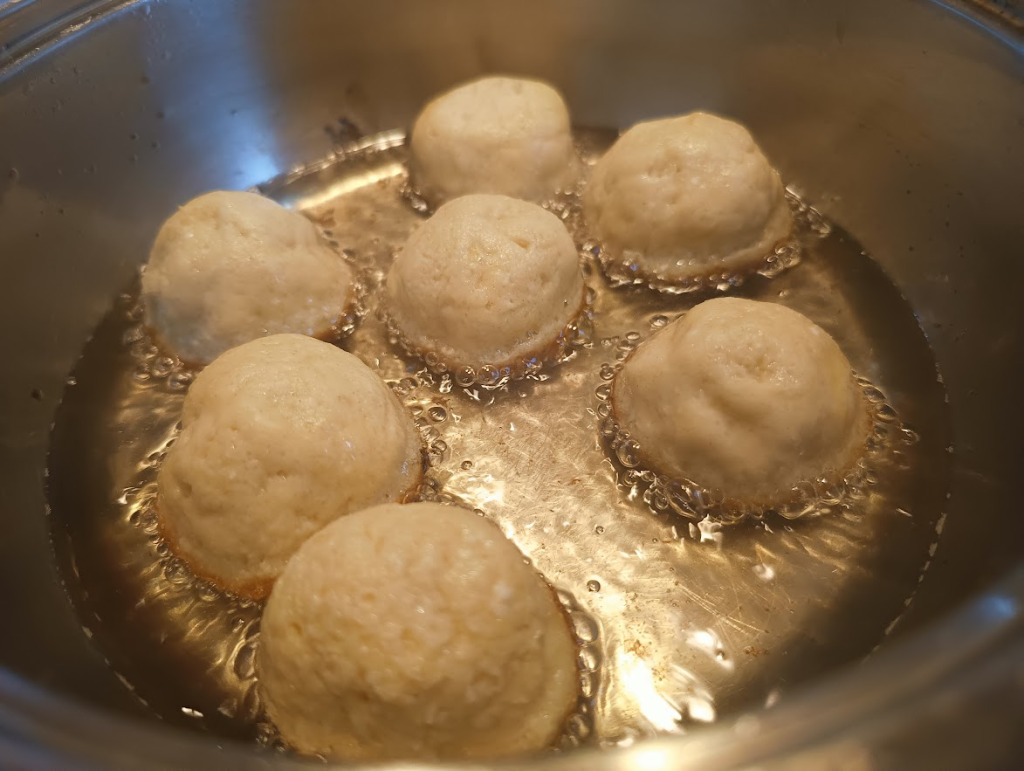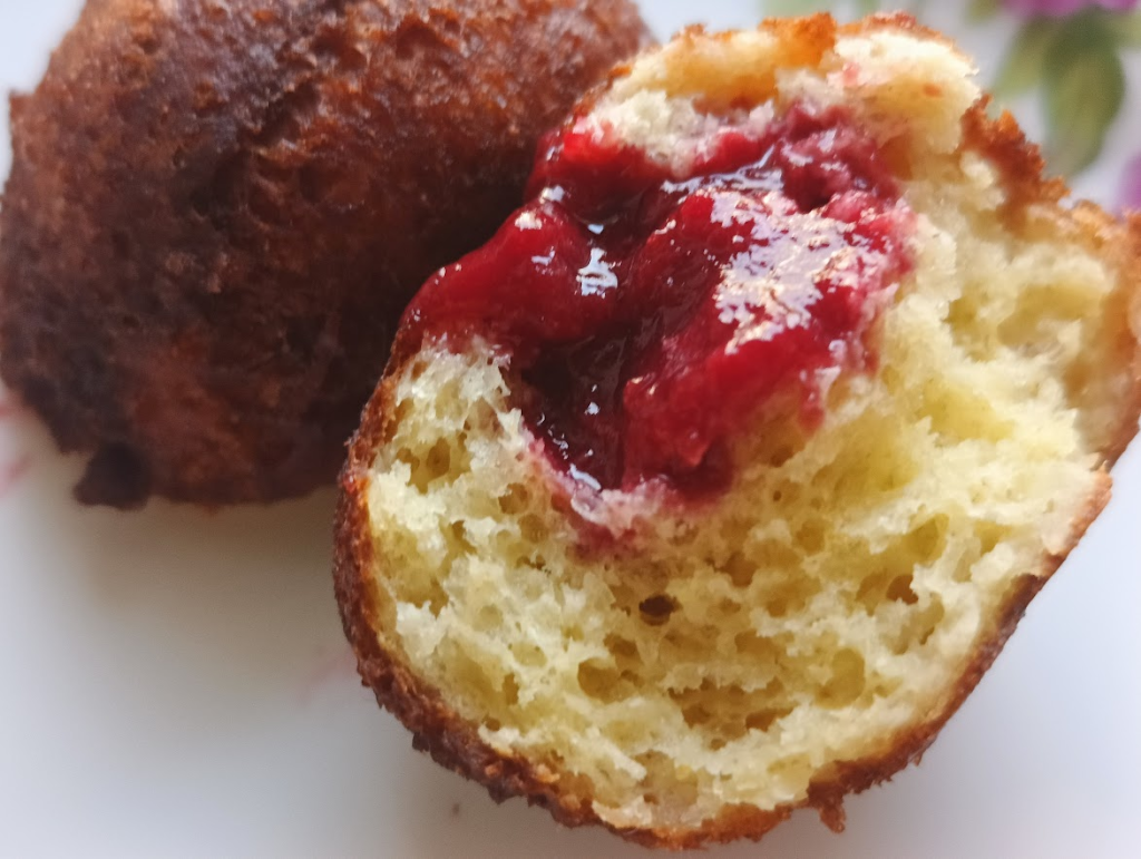 Większe pączki będzie trzeba smażyć dłużej na niższej temperaturze malutkie mogą być w trochę większej.