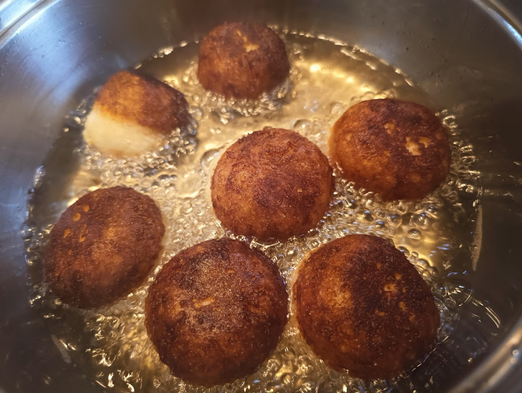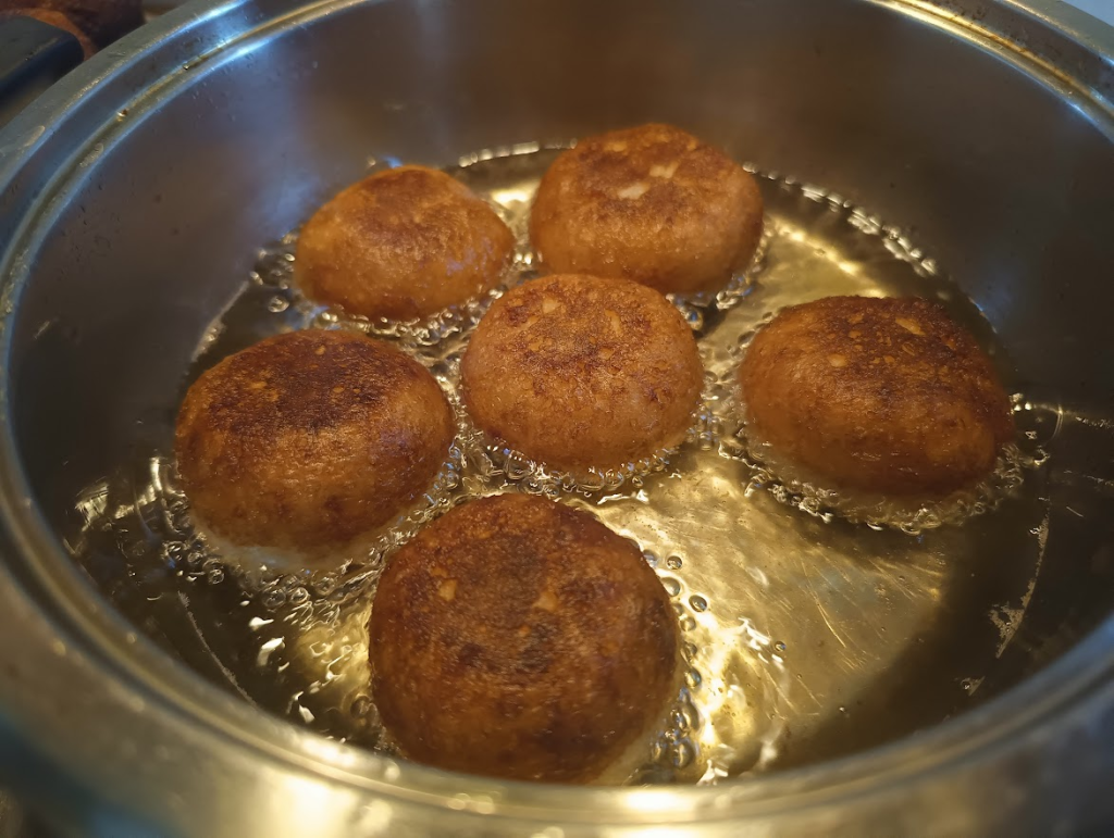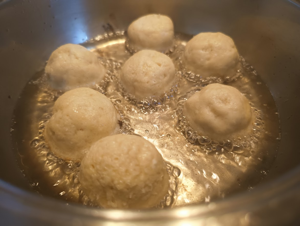 Trzeba je wyczuć 🙂 jak będziecie widzieli, że zaczyna Wam tłuszcz parować, należy zmniejszyć płomień – pączki spalą się i nie wypieką się wewnątrz.