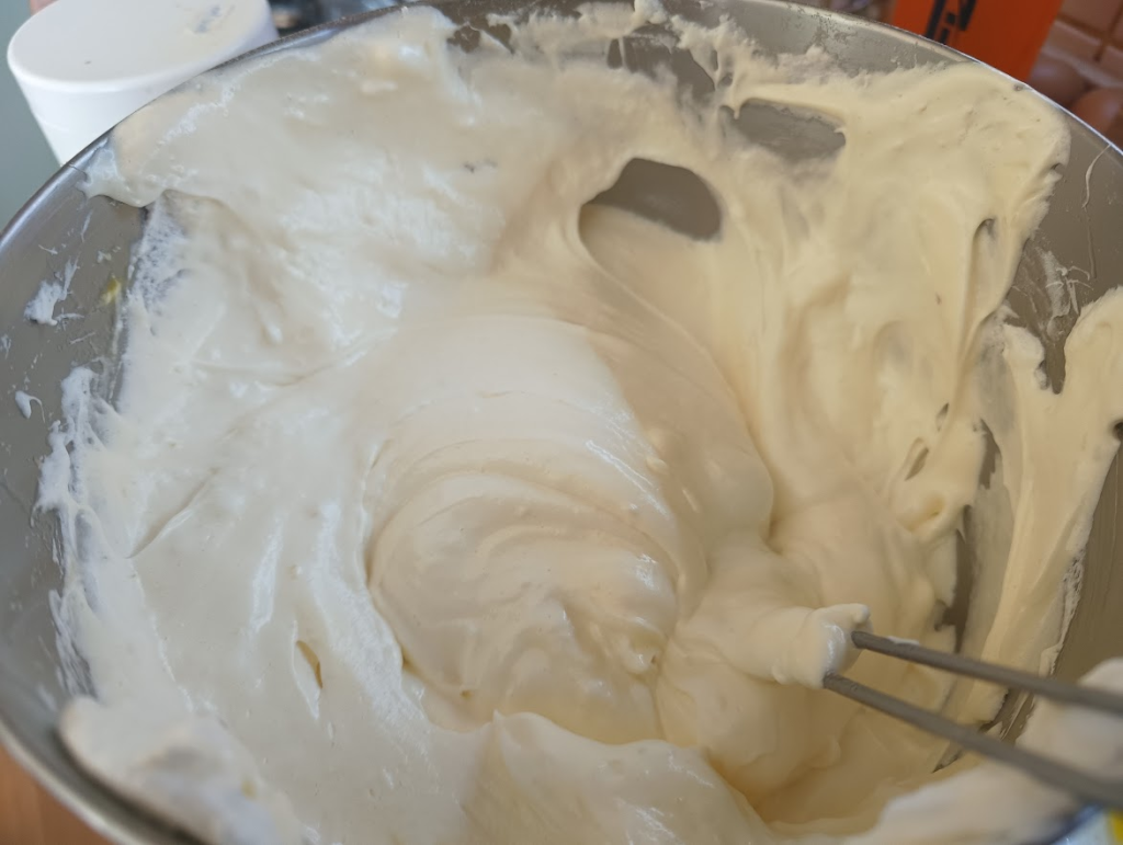 - Ubij wszystko na puszystą, lekko ciągnącą się masę.