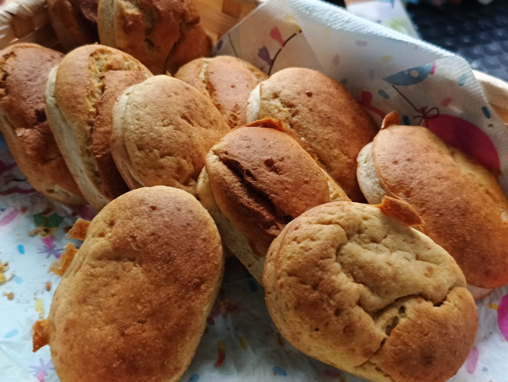 Nie chodzi o wyrośnięcie – bo masa i tak urośnie dzięki sodzie i ocetowi – ale o subtelny drożdżowy zapach, który pojawi się podczas pieczenia. Wystarczy naprawdę niewielka ilość (1–2 g świeżych drożdży lub szczypta instant), by bułeczki zyskały nutę klasycznego pieczywa śniadaniowego.